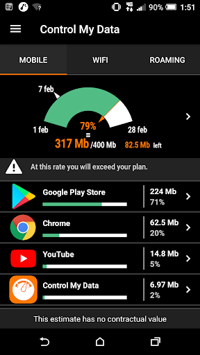 - Access to a ruler to simulate the consumption of your data remaining : web surf, email, downloads, video, music