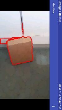 Lorsque la personne malvoyante se déplace, une voix de synthèse indique l'emplacement de objets détectés sur le passage et leur couleur. Si la personne s'arrête de marcher, la détection ne fonctionne plus."