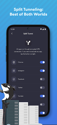 Connect with a single tap and utilize split tunneling to tailor your online experience.