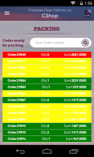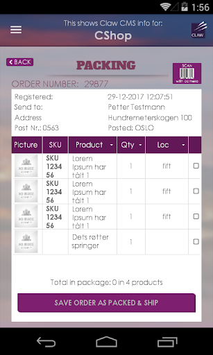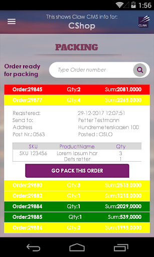 Packing and warehouse app towards the claw.no webshop solution.
