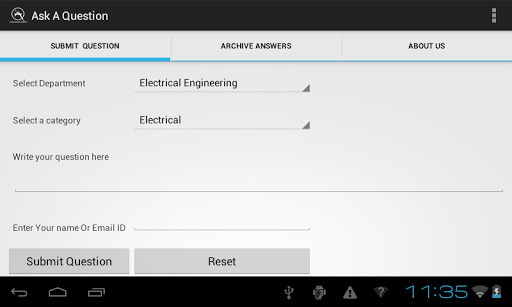 The “Ask A Question Application or AAQ app” is designed to post a question