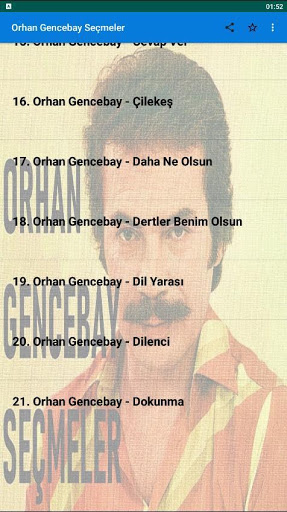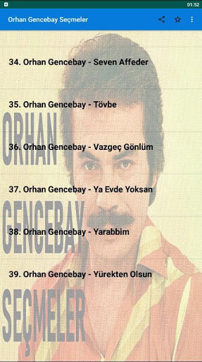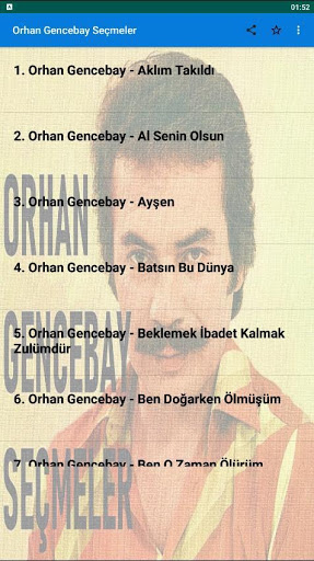 "1. Orhan Gencebay - Aklım Takıldı","2. Orhan Gencebay - Al Senin Olsun","3. Orhan Gencebay - Ayşen","4. Orhan Gencebay - Batsın Bu Dünya","5. Orhan Gencebay - Beklemek İbadet Kalmak Zulümdür","6. Orhan Gencebay - Ben Doğarken Ölmüşüm","7. Orhan Gencebay - Ben O Zaman Ölürüm","8. Orhan Gencebay - Ben Topraktan Bir Canım","9. Orhan Gencebay - Beni Biraz Anlasaydın","10. Orhan Gencebay - Beni Böyle Sev Seveceksen","11. Orhan Gencebay - Benim Dünyam","12. Orhan Gencebay - Bir Araya Gelemeyiz","13. Orhan Gencebay - Bir Görüşte Aşık Oldum","14. Orhan Gencebay - Bir Teselli Ver","15. Orhan Gencebay - Cevap Ver","16. Orhan Gencebay - Çilekeş","17. Orhan Gencebay - Daha Ne Olsun","18. Orhan Gencebay - Dertler Benim Olsun","19. Orhan Gencebay - Dil Yarası","20. Orhan Gencebay - Dilenci","21. Orhan Gencebay - Dokunma","22. Orhan Gencebay - Dünya Dönüyor","23. Orhan Gencebay - Farkında Mısın","24. Orhan Gencebay - Gönül Dağı","25. Orhan Gencebay - Gözüm Kesmiyor","26. Orhan Gencebay - Hatasız Kul Olmaz","27. Orhan Gencebay - İdam Mahkumu","28. Orhan Gencebay - Kabahat Seni Sevende","29. Orhan Gencebay - Kahrolayım","30. Orhan Gencebay - Kime Ne","31. Orhan Gencebay - Kır Gönlümün Zincirini","32. Orhan Gencebay - Mevsim Bahar Olunca","33. Orhan Gencebay - Sen de Haklısın","34. Orhan Gencebay - Seven Affeder","35. Orhan Gencebay - Tövbe","36. Orhan Gencebay - Vazgeç Gönlüm","37. Orhan Gencebay - Ya Evde Yoksan","38. Orhan Gencebay - Yarabbim","39. Orhan Gencebay - Yürekten Olsun"