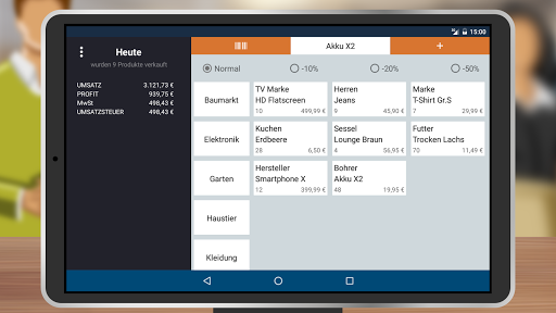 Tablet Cash Register offers a cashier function , a warehouse management and many other useful features Despite careful monitoring of the functionality and the calculations I assume no liability for this app .