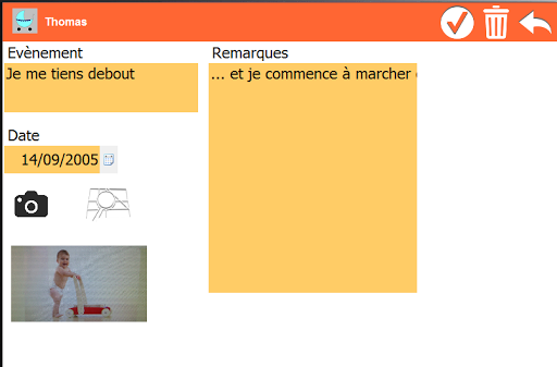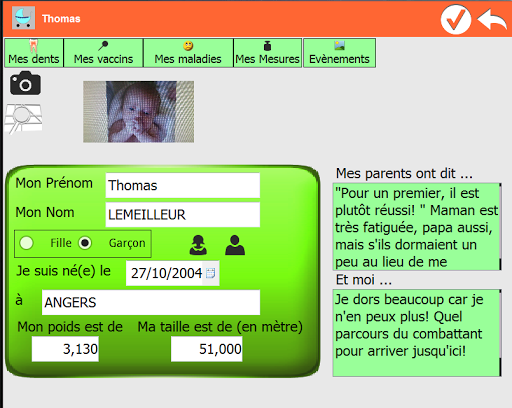 De la naissance à l'adolescence, cette application permet de gérer un suivi de l'évolution au fil des années, avec un album photos