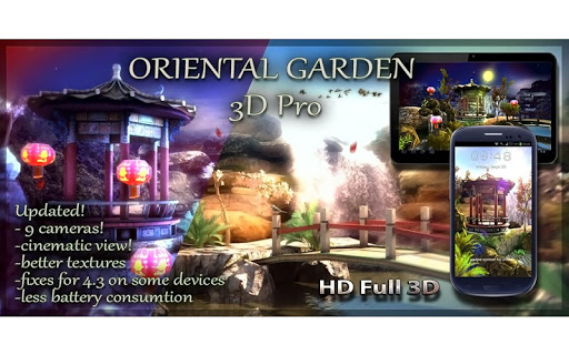 Oriental Garden 3D Pro made with OPEN GL 2.0 and optimized to consume low resources and also not to drain your battery.