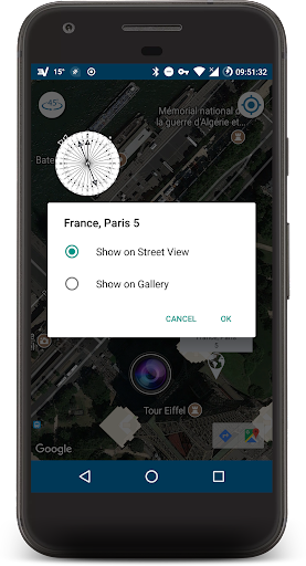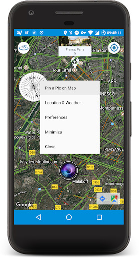Tip: Press & Hold on Floating Compass to See the Location on Map.