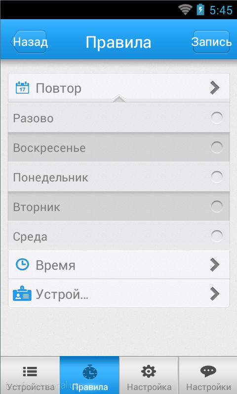 • В приложении имеются таймеры, для активации вашей розетки по расписанию