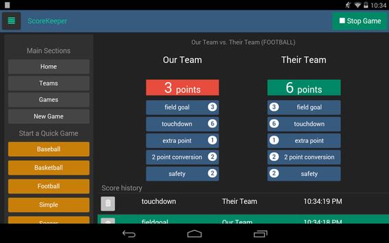 ScoreKeeper is an app that allows you to keep track of the score at Soccer, Football, Basketball, and Baseball games as well as provides a simple game system for keeping score of any type of sport or family game.