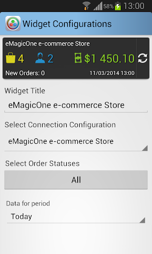 - homescreen widget showing your store daily progress - number of new customers, orders and total sales