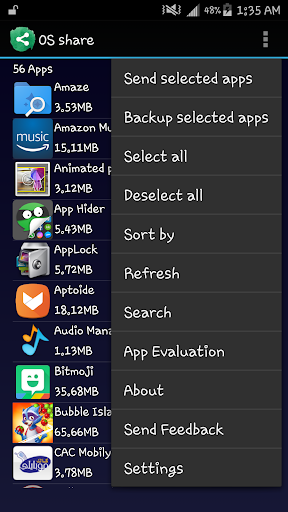 Are you trying to send an application (s) loaded on your device? Are you trying to share an app you liked with a friend? The OS share application is the solution! You can share any application by sending the download file directly!