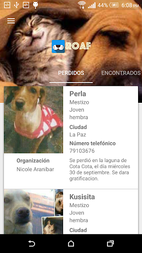 .-Ver noticias de mascotas perdidas, en adopción y encontradas