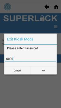To Exit please tap the screen 10 times and the default password is 0000 (When you exit Kiosk Mode you will be prompted with the list of Home apps installed on the device, you should select "TouchWiz Home" )