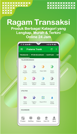 Pratama Tronikは、いつでもどこでもどこでも行うことができるので、トランザクションの利便性を提供するオンライン支払い(PPOB)のためのモバイルアプリケーションです。すべてのニーズは、クレジットの購入、データパッケージの購入、またはインターネットクォータの購入から解決され、安いパルス、安い電気トークン、購入します。 1つの簡単で速くて安価なアプリケーションでのみ行われます。