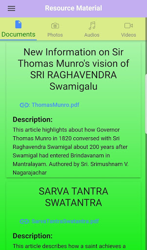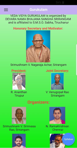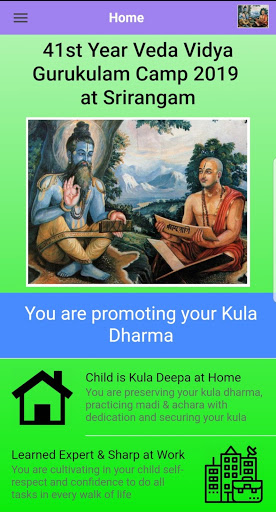 This app helps with Veda Vidya Gurukulam camp activities at Srirangam and learn with dedication. This app is for vidyarthis, acharyas, adhyapakas and vidyarthi's parents and rest of the world to know about Veda Vidya Gurukulam camp activities at Srirangam. This app has information about the camp organizers, camp details, class schedules, syllabus for each year, daily class activities with timings, vidyarthi, adhyapakas and acharya details. This app also contains learning resources useful for everyone to share and learn. Learning from this app is not limited to the camp members only. Everybody in the world can potentially benefit from the camp through this app.