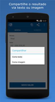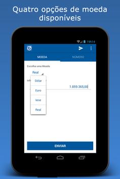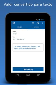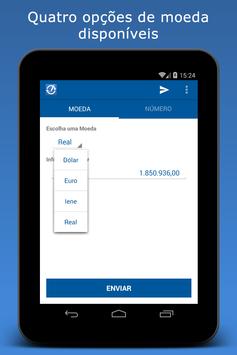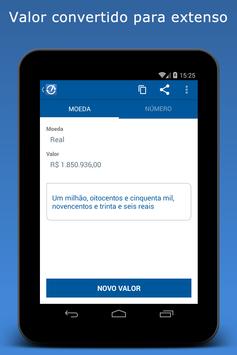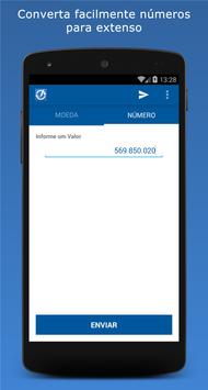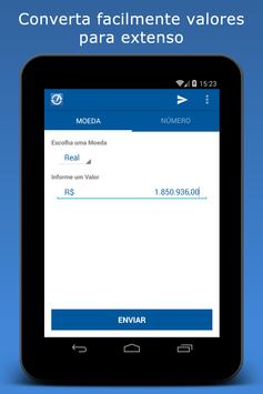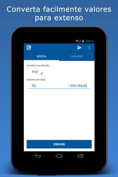 O app de conversão visa auxiliar na escrita correta de valores de moedas e números. Ideal para ser utilizado no preenchimento de cheques, recibos, documentos, contratos, escrituras e outros. Estão disponíveis quatro opções de moedas para conversão, o que pode auxiliar no preenchimento de documentos que utilizem moedas estrangeiras.