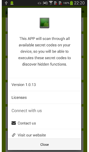 *** IMPORTANT! Some manufacturers not allow the use of these codes and they may not work on your device. By using secret codes you can change some of your device settings. Use at your own risk! ***