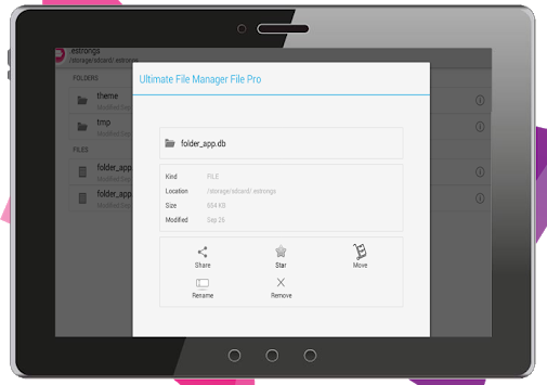 Ultimate File Manager File Pro is Applicationn manage Explore, create, search, copy, paste, delete, rename, zip ETC. your files and folders. Manage files on the SD card. Preview .pdf, .mp3, .txt, .html, word excel files.