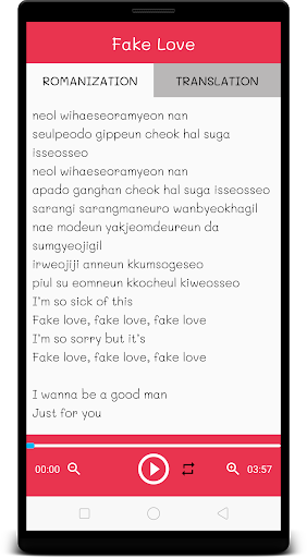 This application is very easy to use. You can play many BTS songs with lyrics. Play every BTS 방탄소년단 Albums and Singles, complete with Romanization and English translation. The best Korean music of the year.