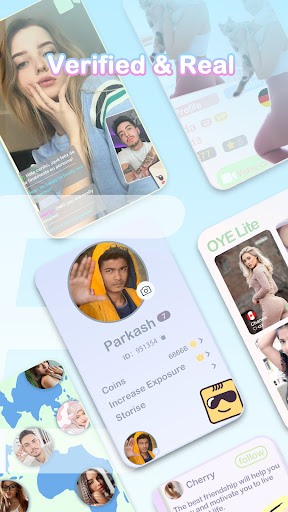 What can you do in this popular social app OYE Lite? You can video chat with local people and talk in real time with people nearby. Meet awesome friends from all over the world. Watch real people in Livestream, sending gift to the one you love. Or go live and receive gife from you fans.