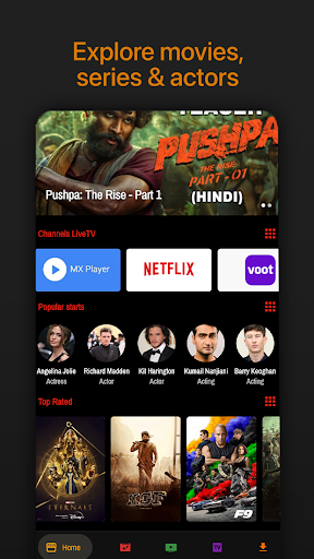 ⬇Trending, Top Rated, Upcoming, and Popular movies are shown in separate categories.