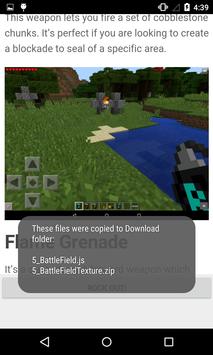 "Battle Mod Installer" adds the top battle mods to download folder in your android device. Battle Mod minecrafe pe is an awesome minecraft pe mod that can make some serious damage on your enemies, but make sure not to hurt yourself in the process.