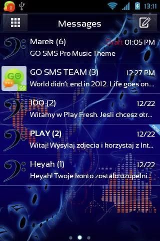 How about some music? Let Your message box turn into completely new creation of sound waves and vibes. Which music You like? Classic, rock? It doesn't really matter. This GO SMS Pro Music Theme theme is created for every single person who loves music as much as we do.