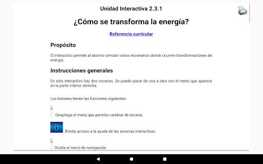 El interactivo permite al alumno simular varios escenarios donde ocurren transformaciones de energía.