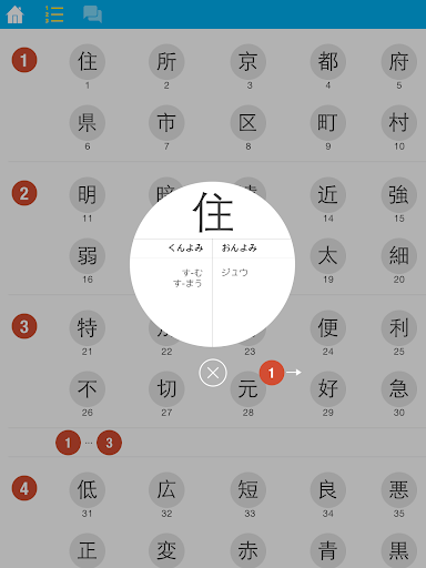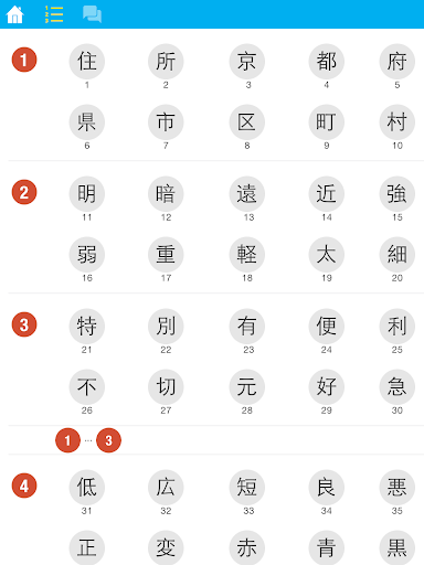 - Kanji are grouped by grade and JLPT and subdivided into sets of 20 for easy practice.