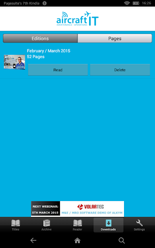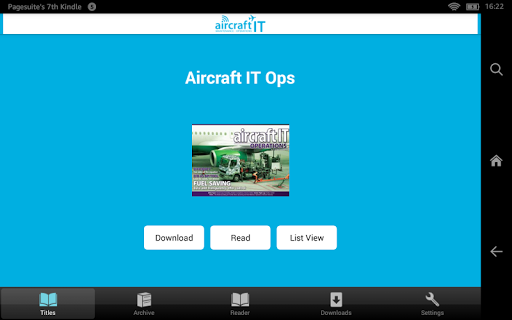 “Aircraft IT brings you two eJournals published every two months: Aicraft IT MRO & Aircraft IT Operations. With this App you will be able to download and road each new eJournal as soon as it is published.