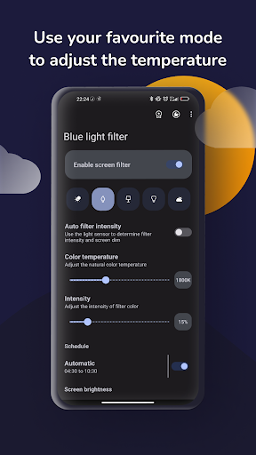 Screen shift to night mode to protect your eyes and relieve your eyes in no time.