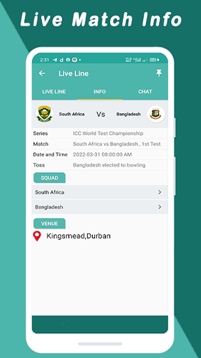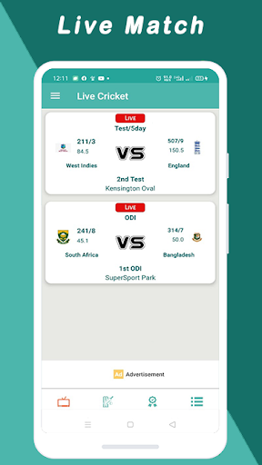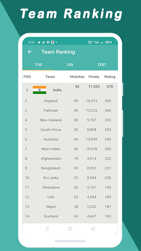Cricket Live Match app you will get live updates on all the formats of Cricket like ODI, Test, T20.