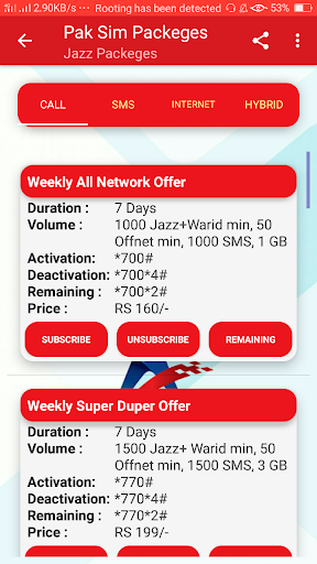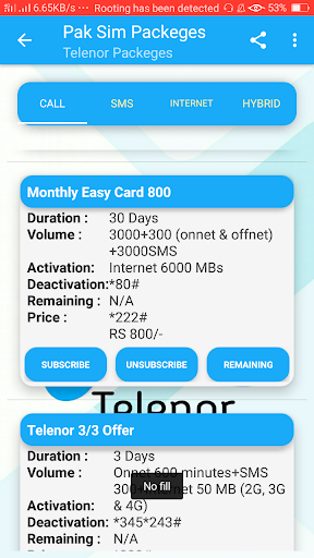 This App Contains Every type of bundles and Packege, Like Call , Internet,SMS, And Hybrid Bundles Also .