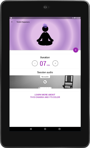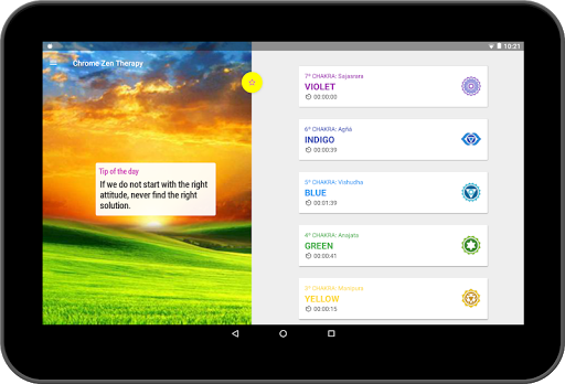The user specifies the duration of each of the therapies and have access to a track to see its progression in every color / chakra.