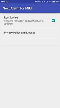 With Next Alarm Widget for MIUI you can see the time of your next alarm in a widget on your home screen and in a persistent notification.
