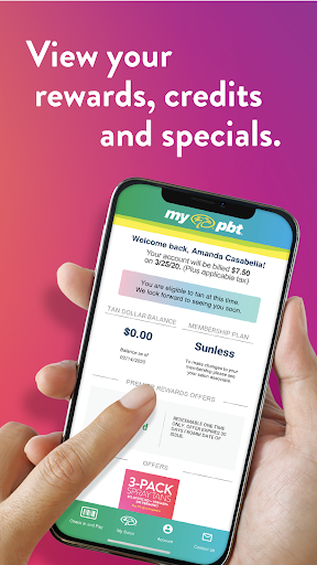 Don’t have a My PBT account? Stop by your nearest Palm Beach Tan, and a PBT expert will help you set one up. You’ll get a follow-up email with login instructions. Then download the app and sign in using your My PBT credentials.