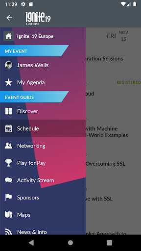 - View the event agenda, sessions, speakers, and sponsors