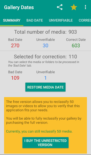 The free version allows you to process 50 images or videos to allow you to verify that this application meets your needs. The files can be selected individually or by folder if you do not want to correct your entire gallery.