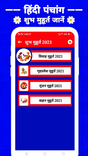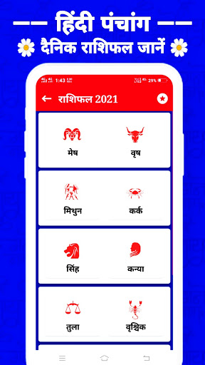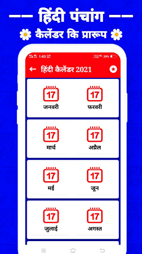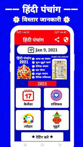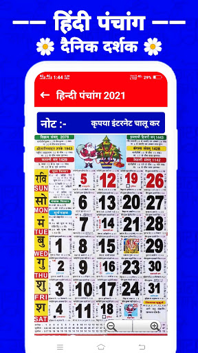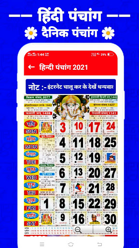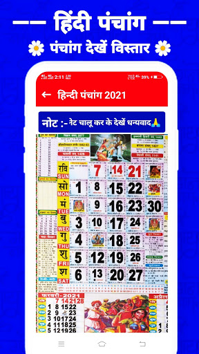 Hindi Calendar 2021 - हिंदी पंचांग 2021 is native Panchang, which doesn't need Internet connectivity to use, comes with following features