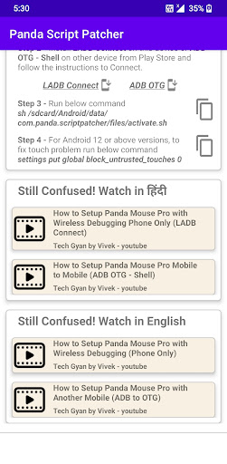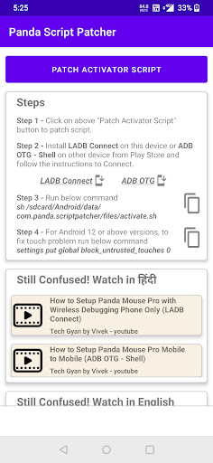 The purpose of this app is to provide Activation support for "Panda Mouse Pro" and "Panda Gamepad Pro" via Wireless Debugging (Phone Only) and via Another Mobile.