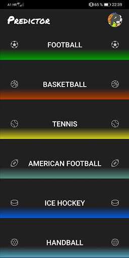 App gives you predictions for results in 8 sports: Football, Basketball, Tennis, American Football, Ice Hockey, Handball, Volleyball and Futsal.