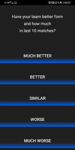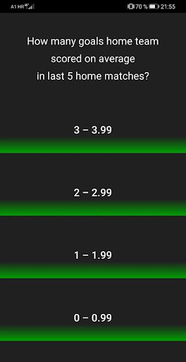 Algorithm is based on statistical knowledge but makes predictions from your answers on questions without knowing club or player names. It guides you through important statistics and gives you prediction. Algorithm is differently set for every odd.