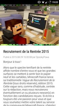 Retrouvez tout l'actualité de Minecraft sur l'application du site Minecraft-France.fr