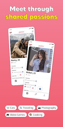 Panini doesn’t just give you matches based on your language preferences, but also your interests. Meet friends with shared interests!