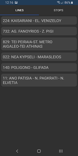 # Description The application displays LINE information and STOP Arrivals of OASA It mainly uses the internet to function I do not own any of the data provided or shown in the app everything belongs to OASA