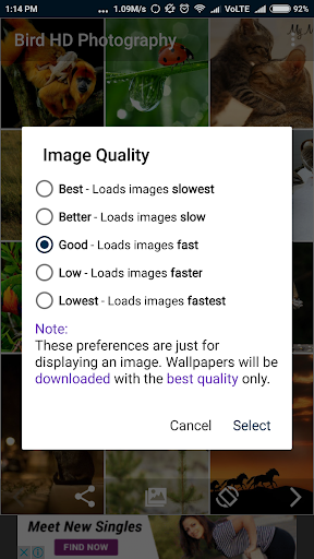 - Select the quality of the wallpaper, so you can load the best HD images with the faster internet otherwise select the lower resolution to load the image quicker.