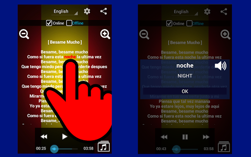 This application will help you learn Spanish much more quickly by using music.