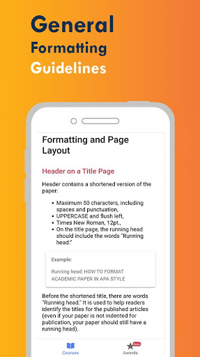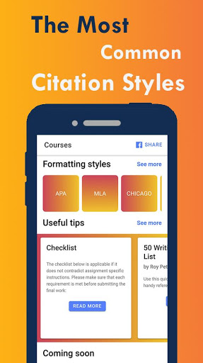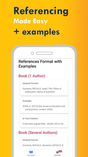 The app contains free guide and recommendations for students on academic referencing and correct formatting. Every course is divided into the following lessons to ease the navigation: