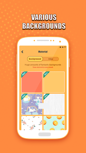 Loads of carefully-selected filters & backgrounds are available here, including different color arts, themes, styles. This means you will find a filter that fits you best and edit whatever you like.
