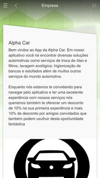 Bem vindos ao App da Alpha Car. Em nosso aplicativo você irá encontrar diversas soluções automotivas como serviços de troca de óleo e filtros, lavagem ecológica, higienização de bancos e estofados além de muitos outros serviços do mundo automotivo.