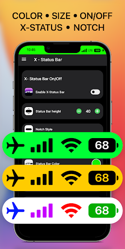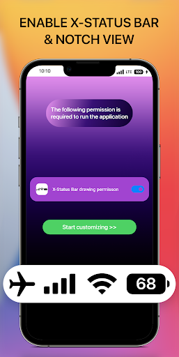 Customize status bar and notch styles iOS 16 with iCenter iOS 16: X - Status Bar. Make your phone unique with just you with status bar and X notch view iOS 16 style. Change your phone status bar & notch view with X Status Bar. Personalize your phone to stand out from the crowd, customize your status bar (notification bar), your notch with iOS style. Make your notch like iOS phone simple and very easy! Change your android smartphone status bar style to look like iOS 16 with X Status Bar.